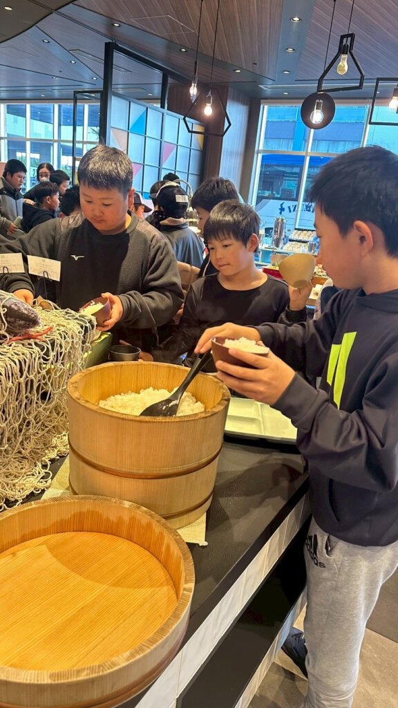 その後、朝食を食べてからグラウンドへ出発!