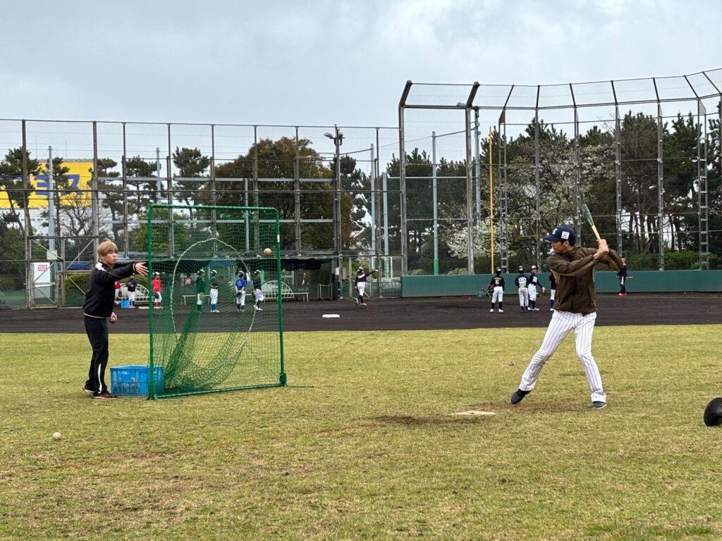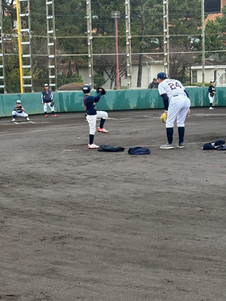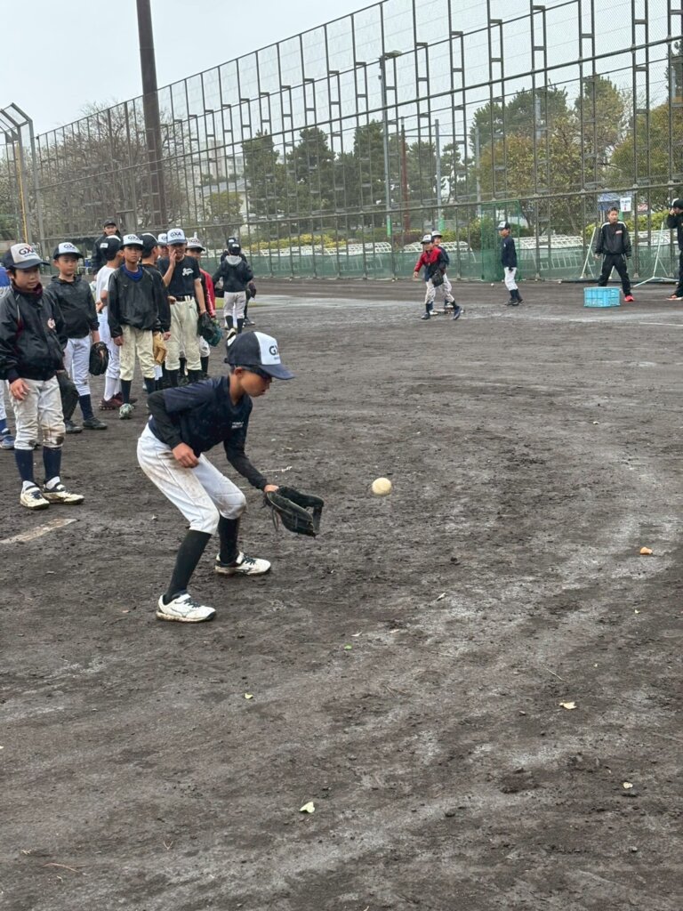 ・野手グループ(新5年:外野手、新6年:内野手):打撃練習⇒投内連携・ゲームノック(田代コーチ)