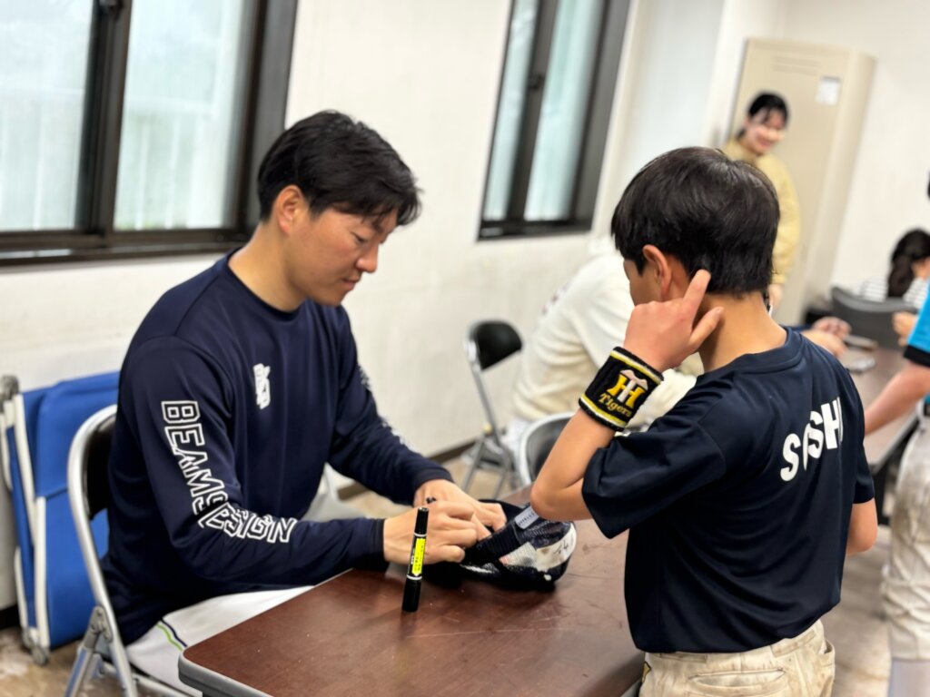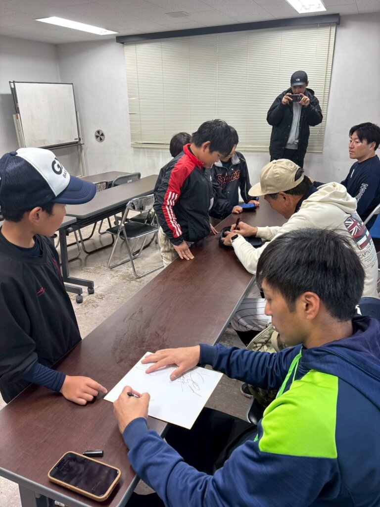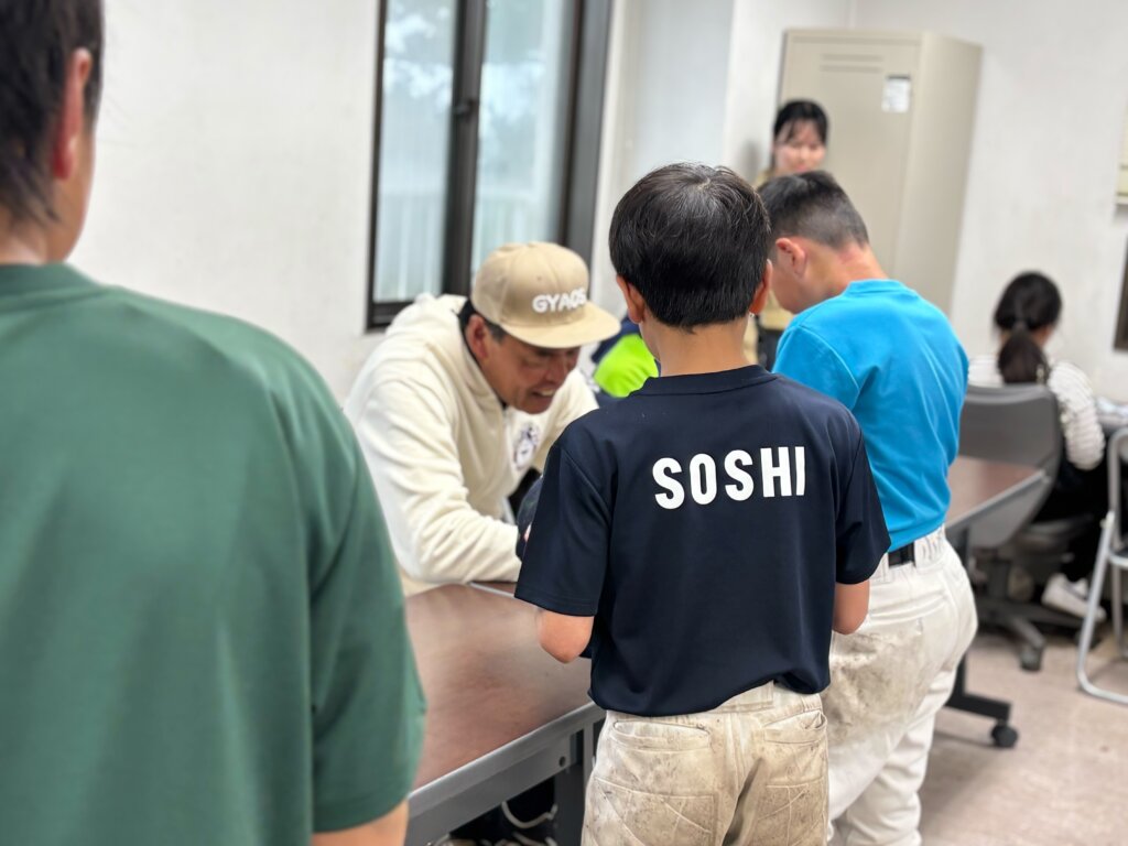 夕食を終えた後、子供たちは野球講座を受講しました。